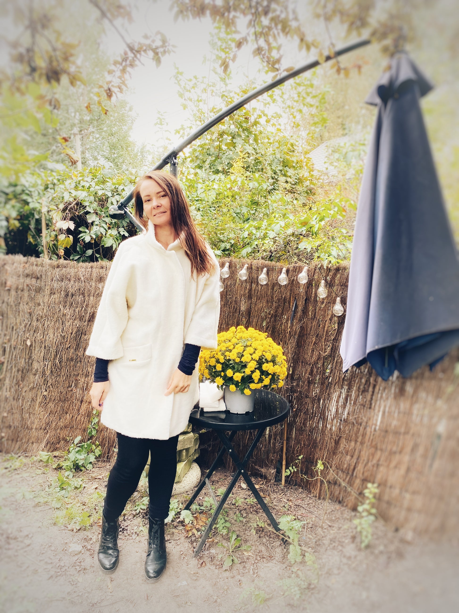 Rudens mētelis oversize stilā ar 3/4 piedurknēm, baltā krāsā