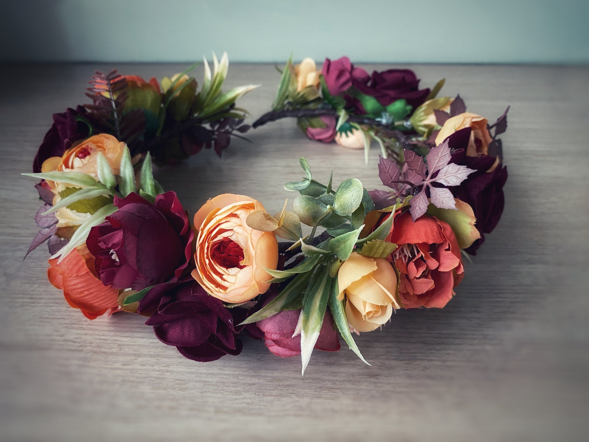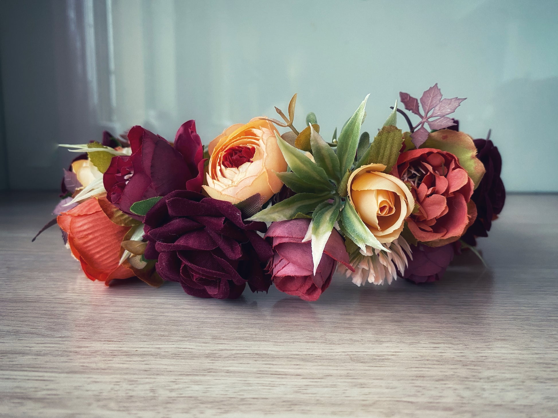 Sasienams auduma ziedu vainadziņš oranži sarkans, vidējs apjoms